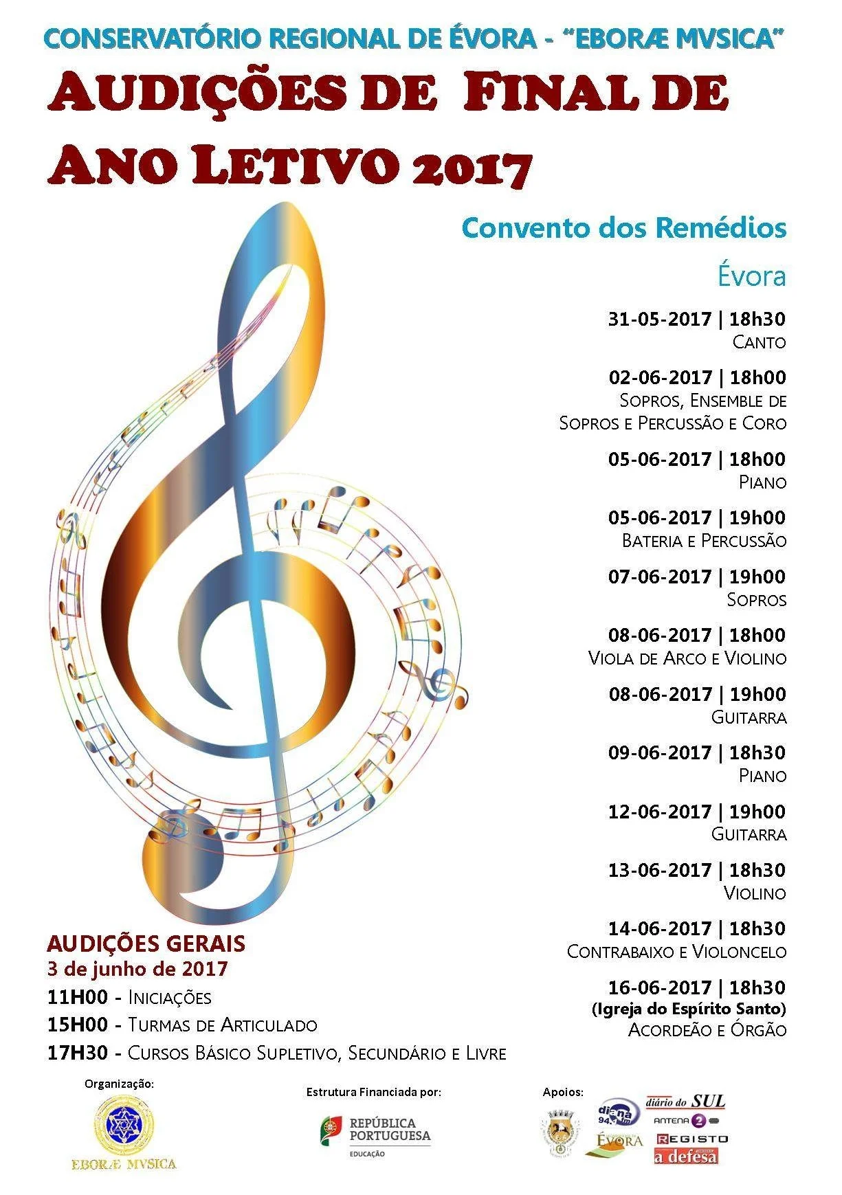 17h00 - Apresentação do Coro do 9º ano do Conservatório Regional de Évora "Eboræ Mvsica" e Escola de Santa Clara. Direção de Hugo Monteiro